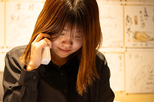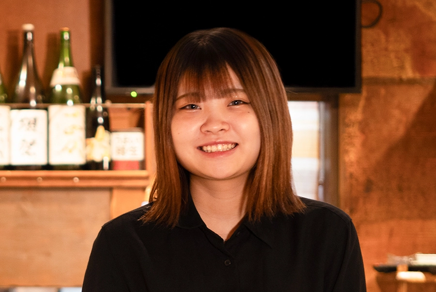 居酒屋「掌」で勤務しています。ホール業務を中心に、スタッフの指導や運営の補佐も行っています。負けず嫌いで頑固な部分もありますが、そうした性格が仕事の責任感につながっていると感じています。