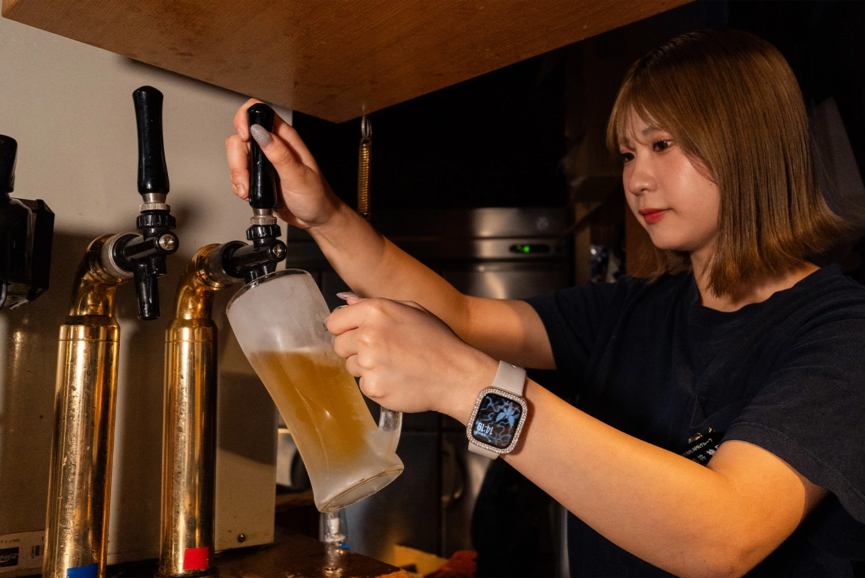 スタッフのシフト管理、接客フォロー、時には厨房にも入り、店全体の雰囲気やクオリティを保つ役割を担っています。